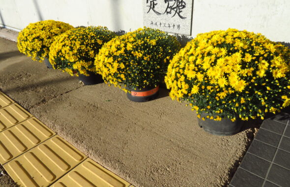 清武小学校くろしお学級の児童さんたちが育てた菊の花を、いただきました。