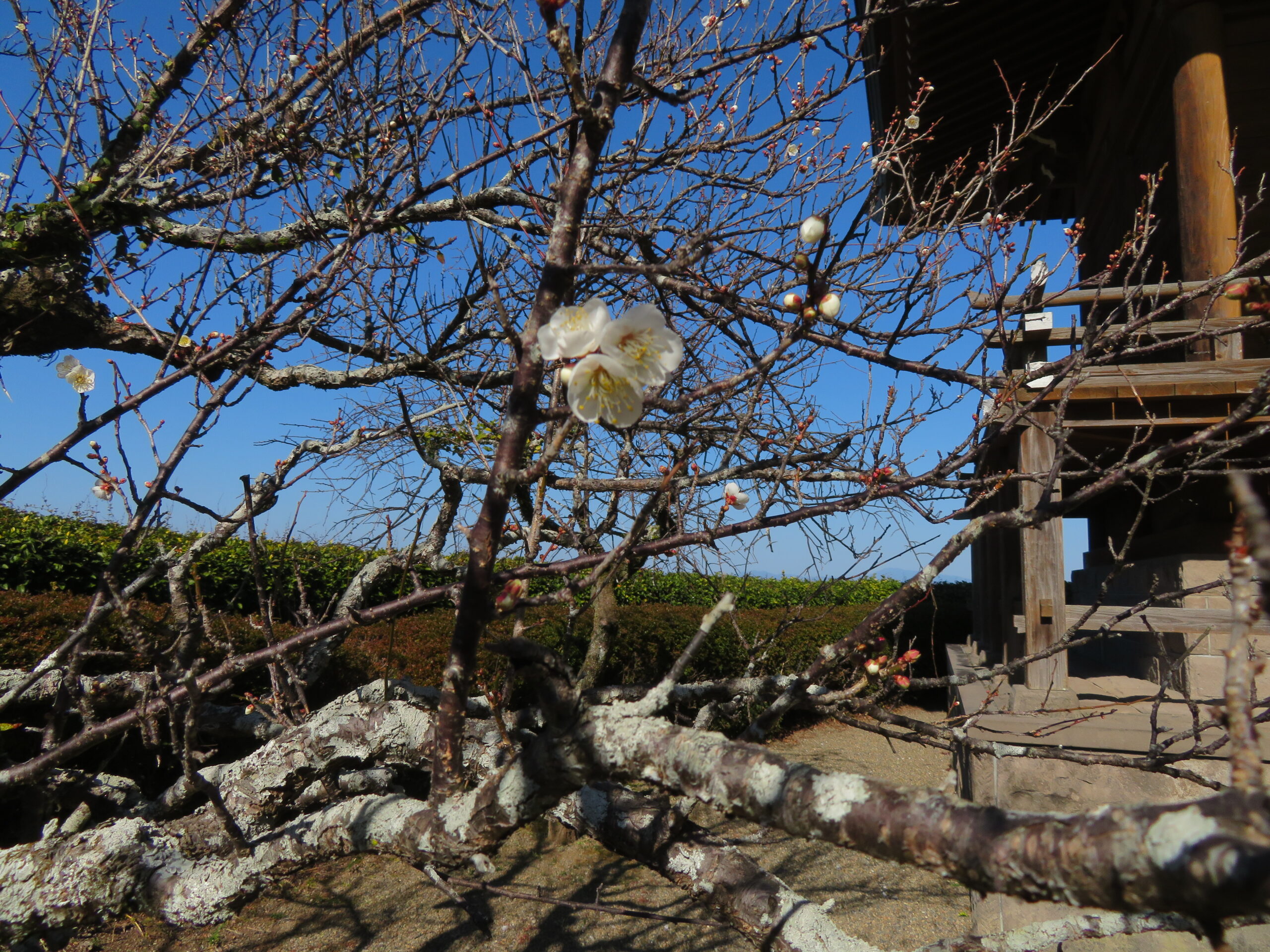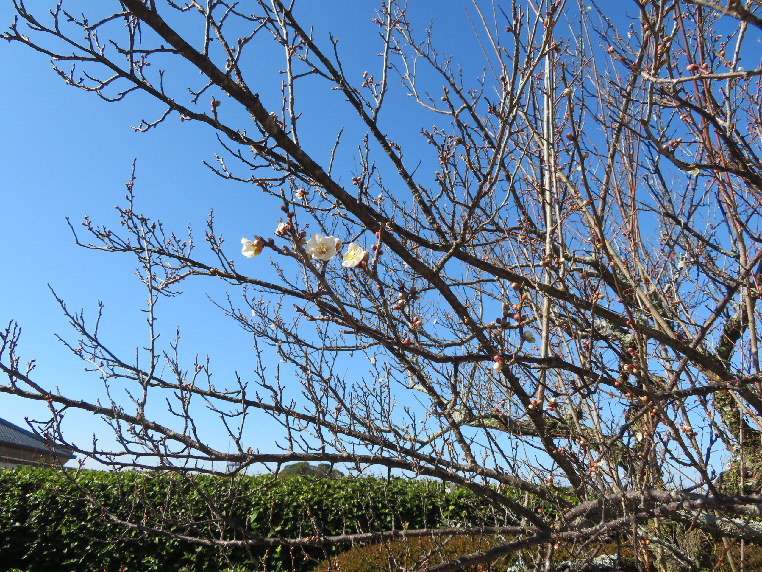 1月 14 2026 梅の花開花🌸 最近、記念館敷地内や旧宅の梅の木に蕾がつき始めたな、と思っていたら一足先に開花している木がありました。 呈茶の頃には、梅の花を鑑賞しながらお茶を飲んでいただけそうです。 新年のご挨拶を申し上げます。